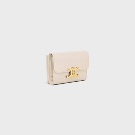 COMPACT WALLET WITH COIN TRIOMPHE IN SHINY CALFSKIN PALE BEIGE