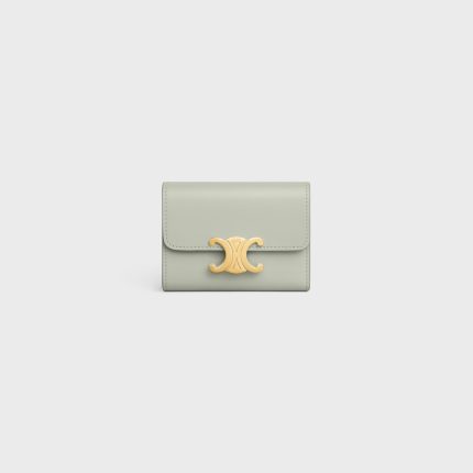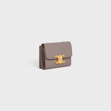 COMPACT WALLET WITH COIN TRIOMPHE IN SHINY CALFSKIN LIGHT CLAY