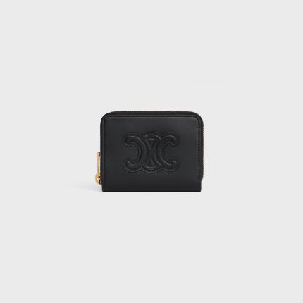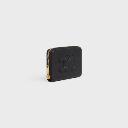 COMPACT ZIPPED WALLET CUIR TRIOMPHE IN SMOOTH CALFSKIN BLACK