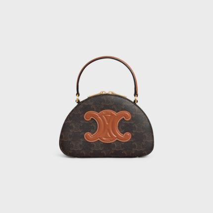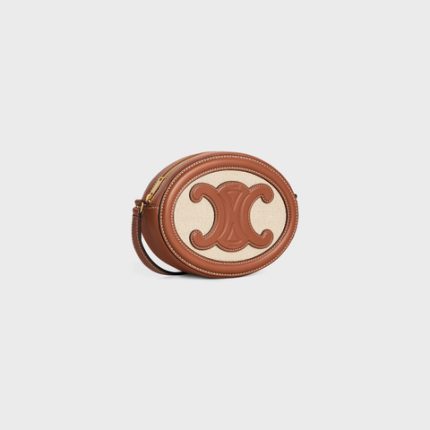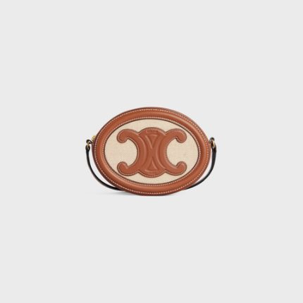 CROSSBODY OVAL PURSE CUIR TRIOMPHE IN TEXTILE AND CALFSKIN NATURAL / TAN