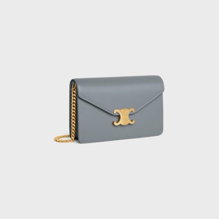 WALLET ON CHAIN MARGO IN SHINY CALFSKIN BLUE GREY