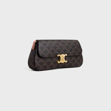 MEDIUM CELINE LOLA BAG IN TRIOMPHE CANVAS AND CALFSKIN TAN