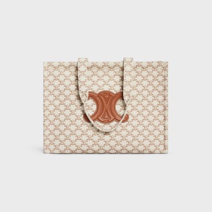 LARGE CABAS THAIS IN TEXTILE WITH TRIOMPHE CANVAS PRINT AND CALFSKIN WHITE