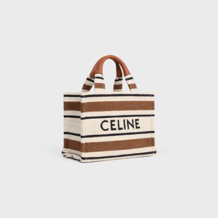 SMALL CABAS THAIS IN STRIPED TEXTILE NAVY BLUE