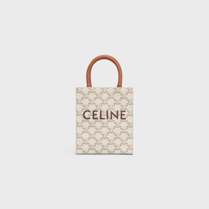 MINI VERTICAL CABAS IN TRIOMPHE CANVAS AND CALFSKIN WITH CELINE PRINT WHITE