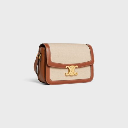CLASSIQUE TRIOMPHE BAG IN TEXTILE AND CALFSKIN NATURAL / TAN