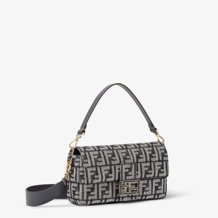 FENDI Baguette® Dark blue denim-effect FF jacquard bag