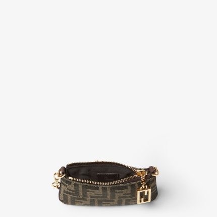 FENDI Baguette Pouch Mini Tobacco brown FF jacquard fabric pouch