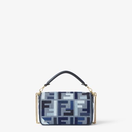 FENDI Baguette® Mini Blue canvas bag with FF embroidery