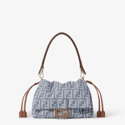 FENDI Mamma Baguette Medium Blue denim-effect FF jacquard bag