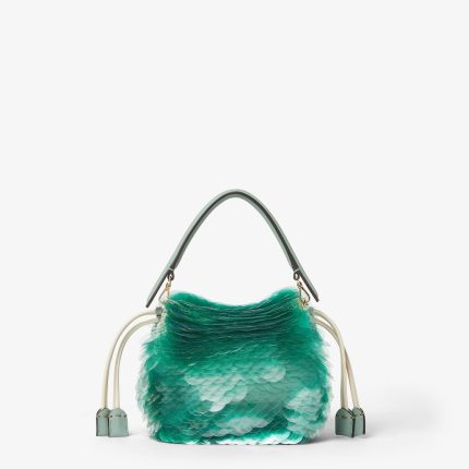 FENDI Mamma Baguette Small Mint green crochet mini-bag with maxi sequins