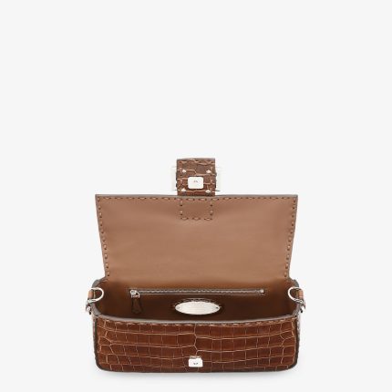 FENDI Baguette Brown crocodile bag with 612 hand-sewn topstitches