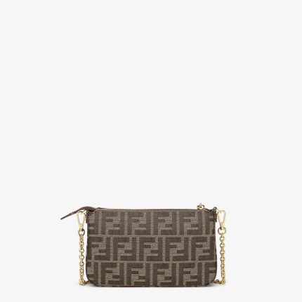FENDI Baguette Pouch Brown jacquard FF fabric clutch with chain