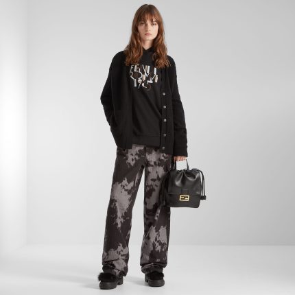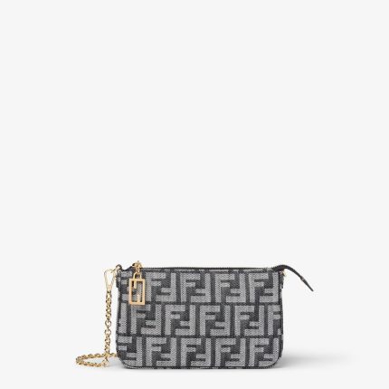 FENDI Baguette Pouch Dark blue denim-effect FF jacquard pouch