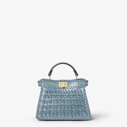 FENDI Peekaboo ISeeU Petite Mercury blue interlaced leather bag