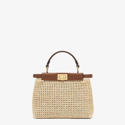 FENDI Peekaboo Mini Cappuccino-colored woven leather bag