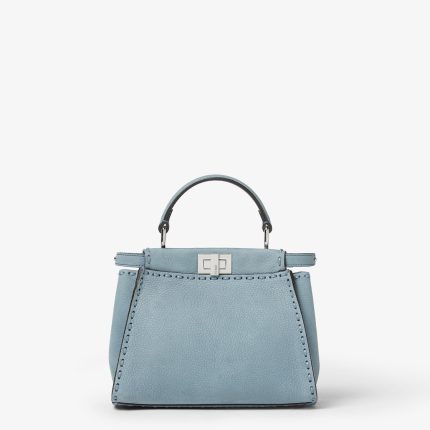 FENDI Peekaboo Mini Mercury blue nubuck leather Selleria bag with 220 hand-sewn topstitches