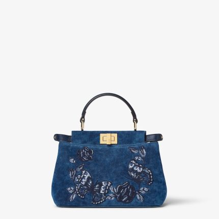 FENDI Peekaboo Mini Blue flocked denim bag with Night Butterfly embroidery