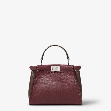 FENDI Peekaboo Mini Burgundy and brown Selleria bag with 220 hand-sewn topstitches