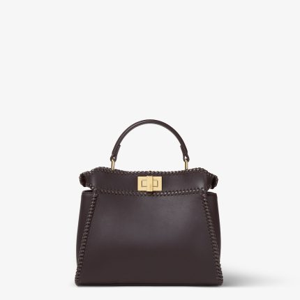 FENDI Peekaboo Mini Dark brown leather bag with threading