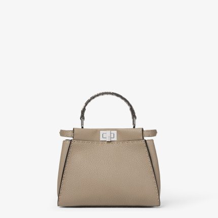 FENDI Peekaboo Mini Dove gray Selleria bag with 1048 hand-sewn topstitches