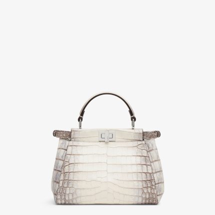 FENDI Peekaboo Mini Sienna brown nubuck crocodile leather bag