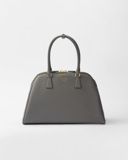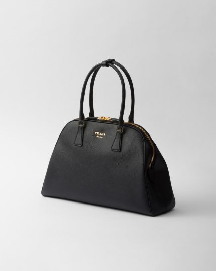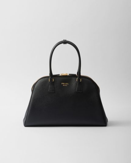 Large Re-Nylon and Leather Top-Handle Bag With Padlock
