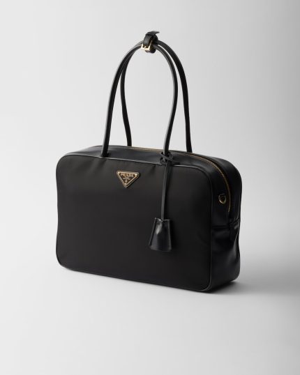 Large Re-Nylon and Leather Top-Handle Bag With Padlock