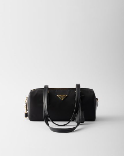 Re-Nylon and Leather Medium Top-Handle Bag With Padlock