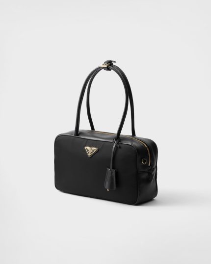 Re-Nylon and Leather Medium Top-Handle Bag With Padlock