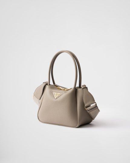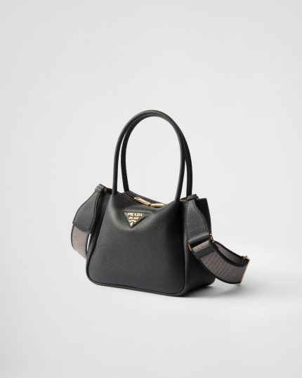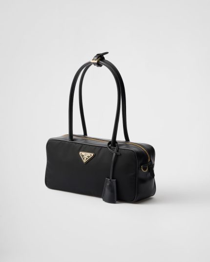 Re-Nylon and Leather Small Top-Handle Bag With Padlock