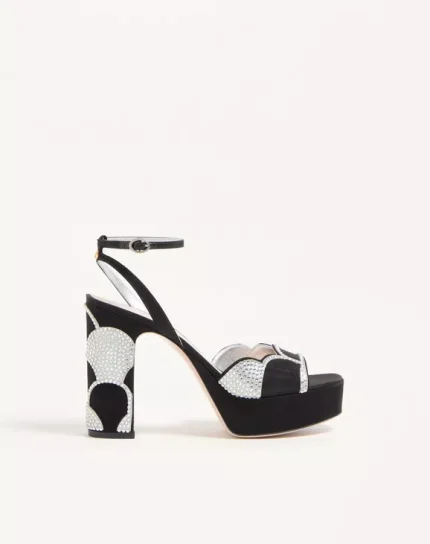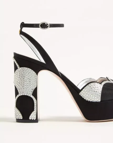 Valentino Bowow Platform Sandal In Moiré Fabric With Crystals 115Mm