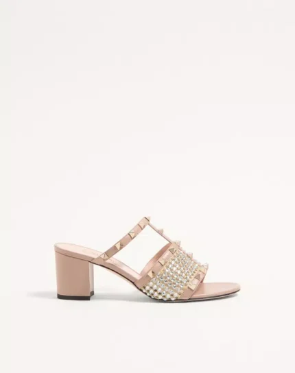 Valentino Rockstud Calfskin Slide Sandal With Strass Embroidery 60Mm