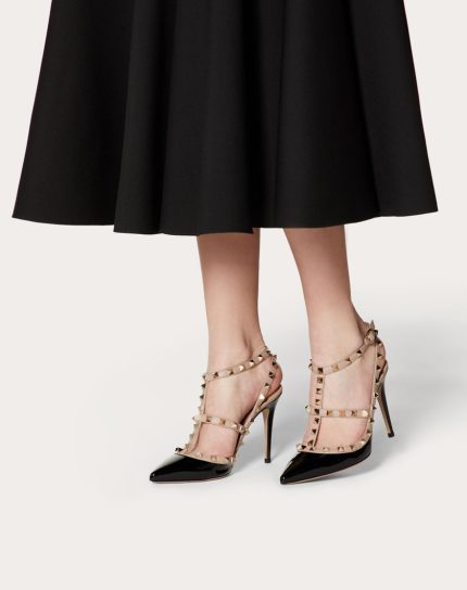 ROCKSTUD ANKLE STRAP PUMP WITH TONAL STUDS 100 MM