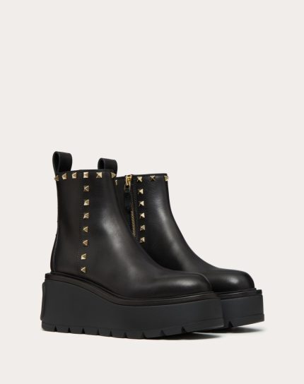 ROCKSTUD WEDGE SANDAL WITH CALFSKIN STRAPS 95MM