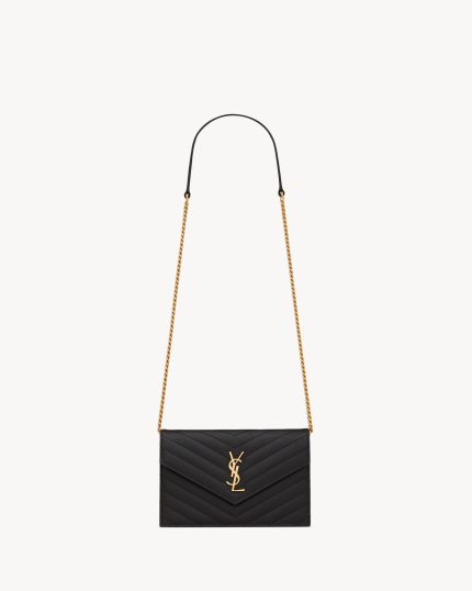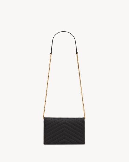 YSL CASSANDRE ENVELOPE CHAIN WALLET IN GRAIN DE POUDRE LEATHER
