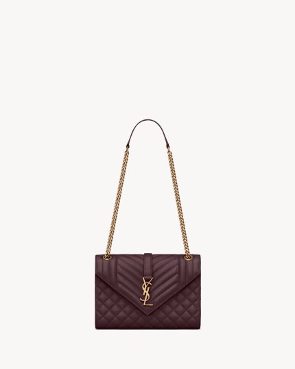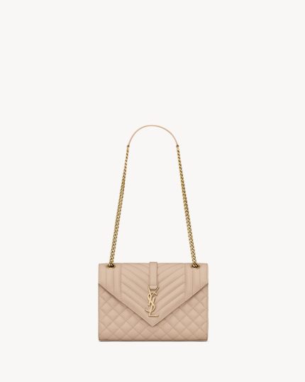 YSL Envelope Medium in Quilted Grain De Poudre Embossed Leather
