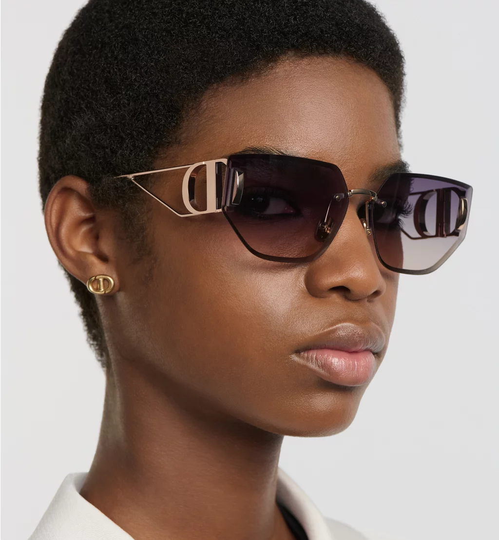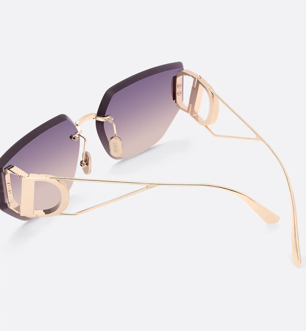 The 30Montaigne B3U sunglasses stand out with an elegant butterfly shape and couture spirit. The frameless style is enhanced by gold-finish metal temples with a functional CD signature inspired by the hallmark clasp on the namesake bag. Completed by gradient purple-to-nude lenses, the statement design lends a modern Dior touch.-