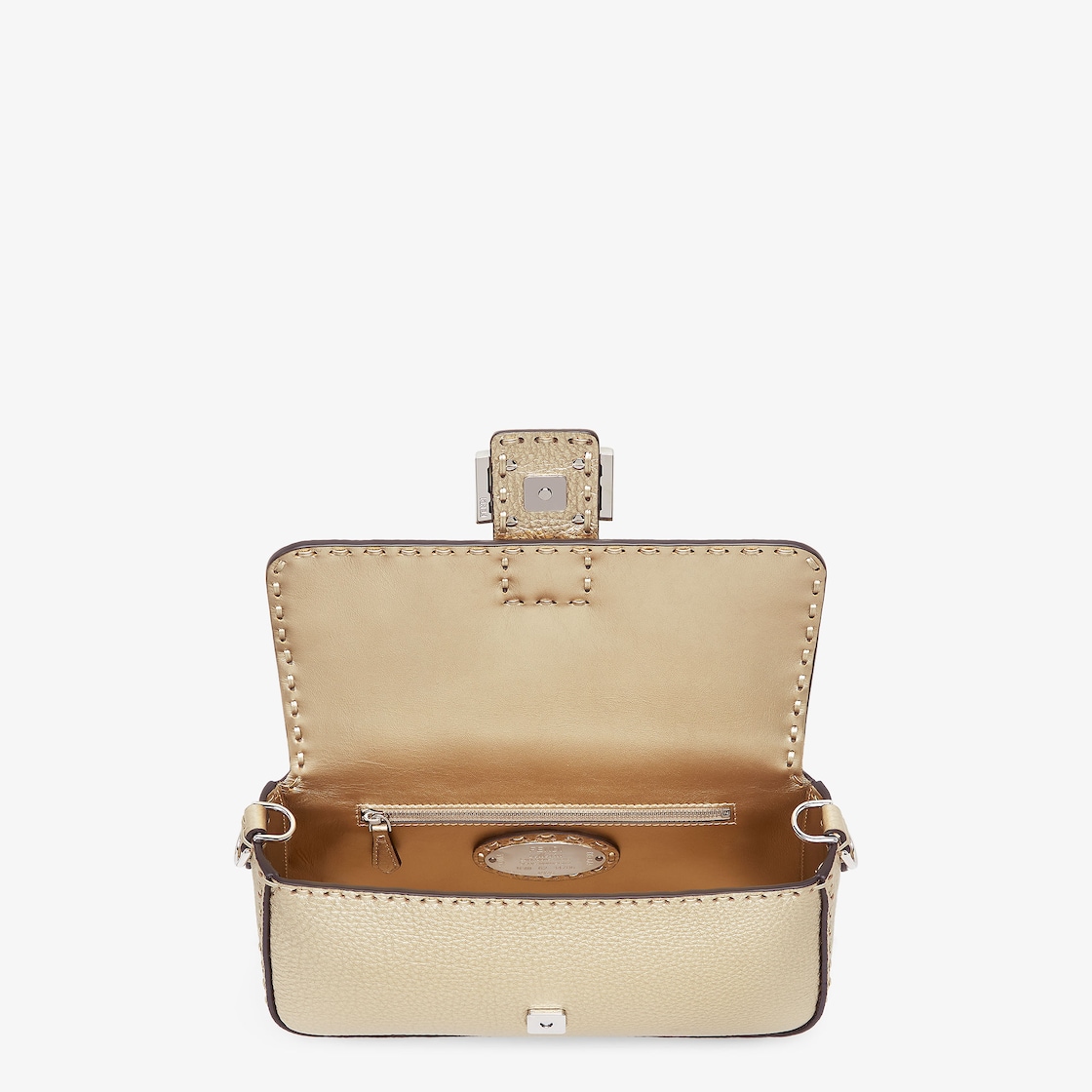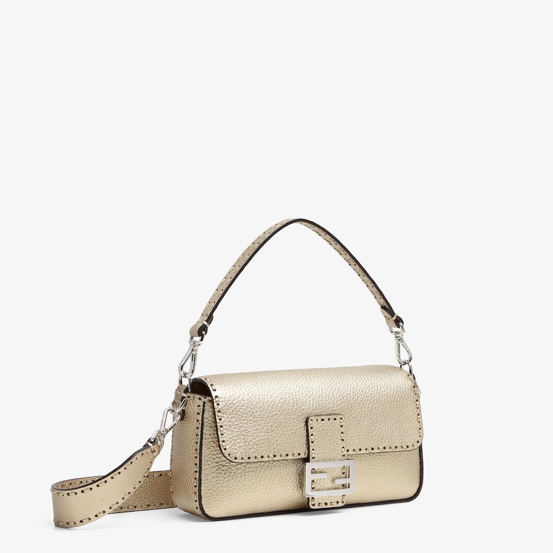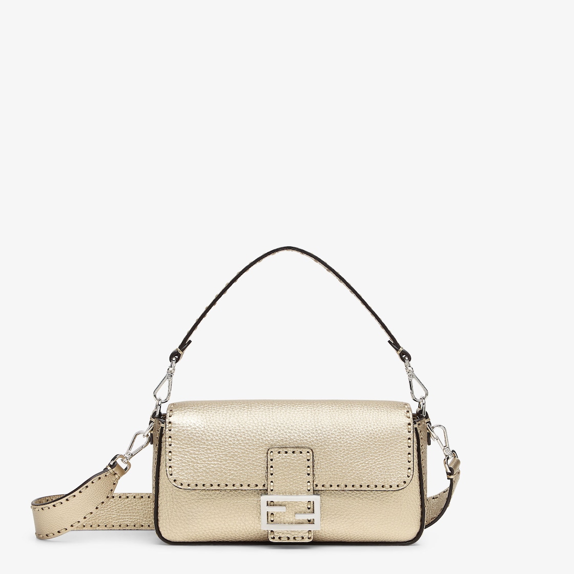 Medium, iconic Baguette bag made with 612 tone-on-tone macro topstitches, an emblem of the iconic Selleria workmanship handed down through generations of Fendi artisans since 1925.