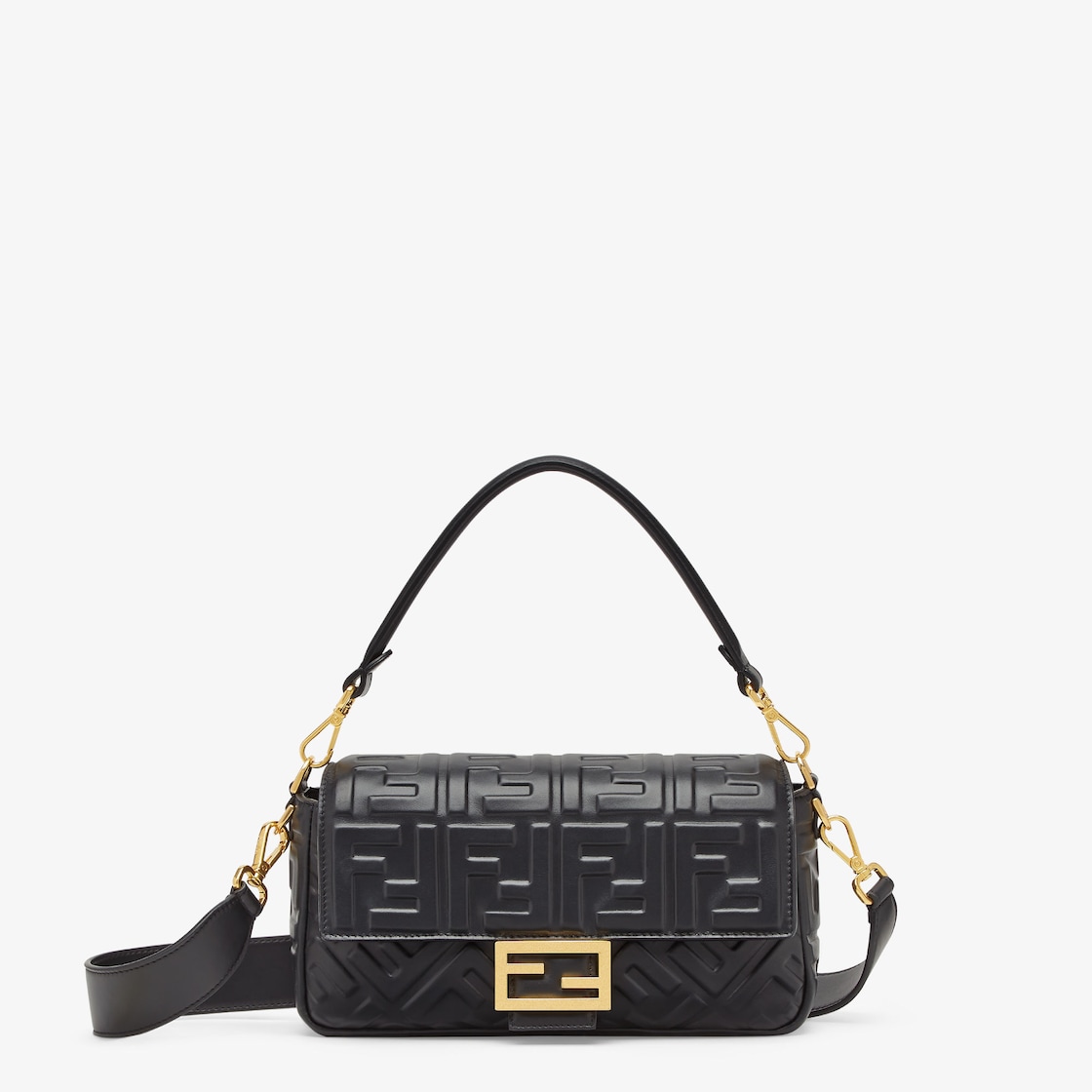 Made of a particularly soft and hard-wearing, black calfskin with a 3D-effect, embossed iconic FF motif. Decorated with an FF clasp.
