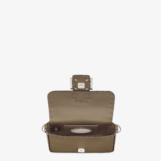 Mini iconic Baguette bag made with 309 hand-sewn tone-on-tone macro topstitches, an emblem of the iconic Selleria workmanship handed down through generations of Fendi artisans since 1925.
