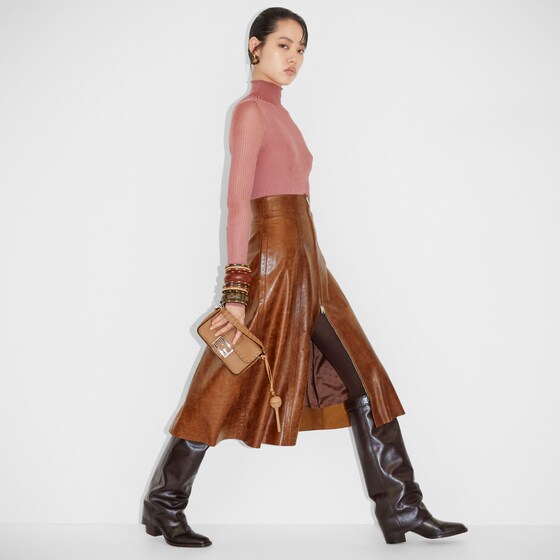 Made of cappuccino-coloured Cuoio Romano leather, calfskin with a characteristic natural grain produced with a metal-free tanning process.