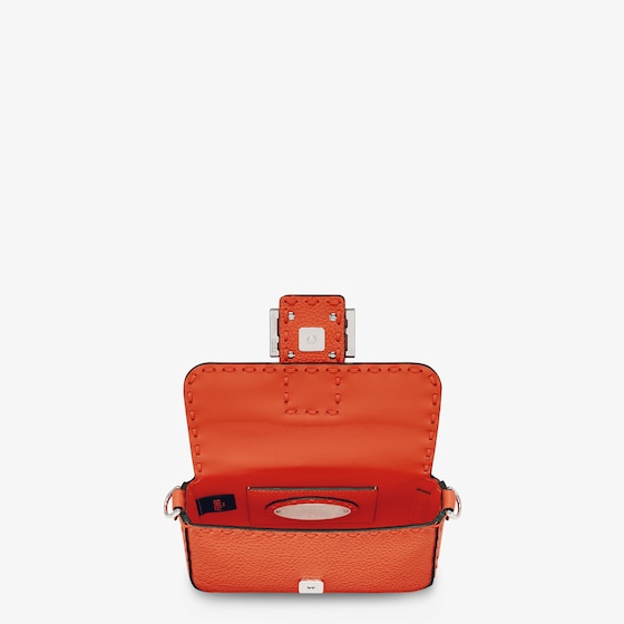 Made of orange Cuoio Romano leather, calfskin with a characteristic natural grain, produced with a metal-free tanning process.