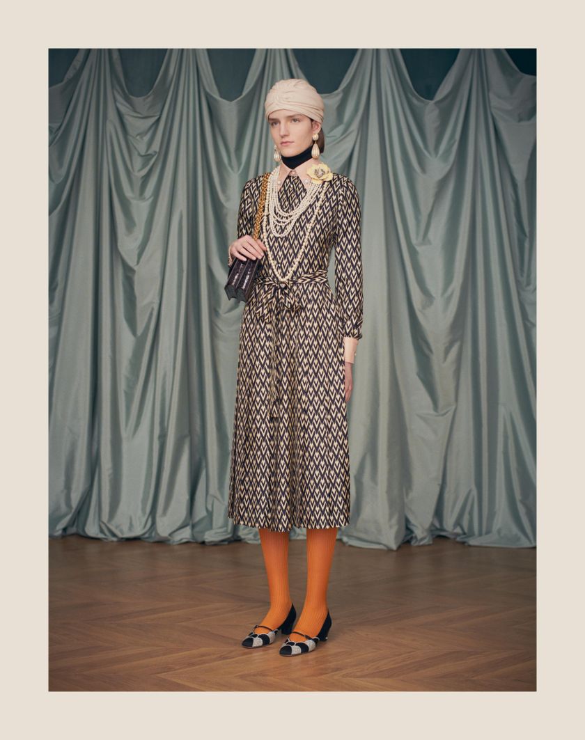 Valentino Garavani Bowow pump with strap in moiré fabric with crystal appliqués and scallop motif