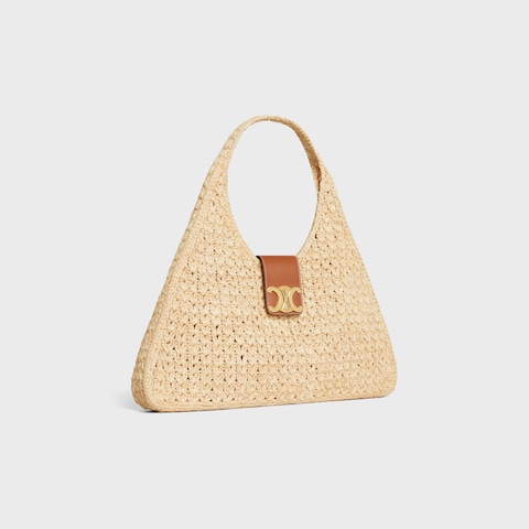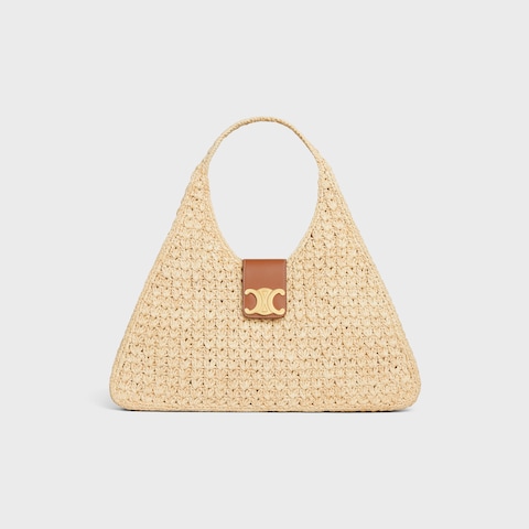CABAS TRIANGLE IN RAFFIA AND CALFSKIN