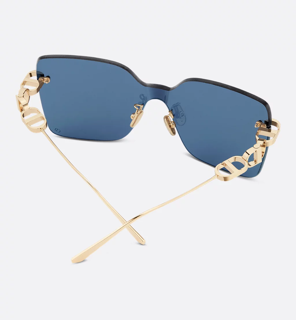 • The CD Chain M1U sunglasses are a contemporary style, characterized by their frameless square mask shape. Featuring a functional CD hinge in gold-finish metal, the CD chain temples are inspired by the 30 Montaigne jewelry collection. Completed by a single blue mask lens, the glamorous creation will elevate any look with a modern touch.