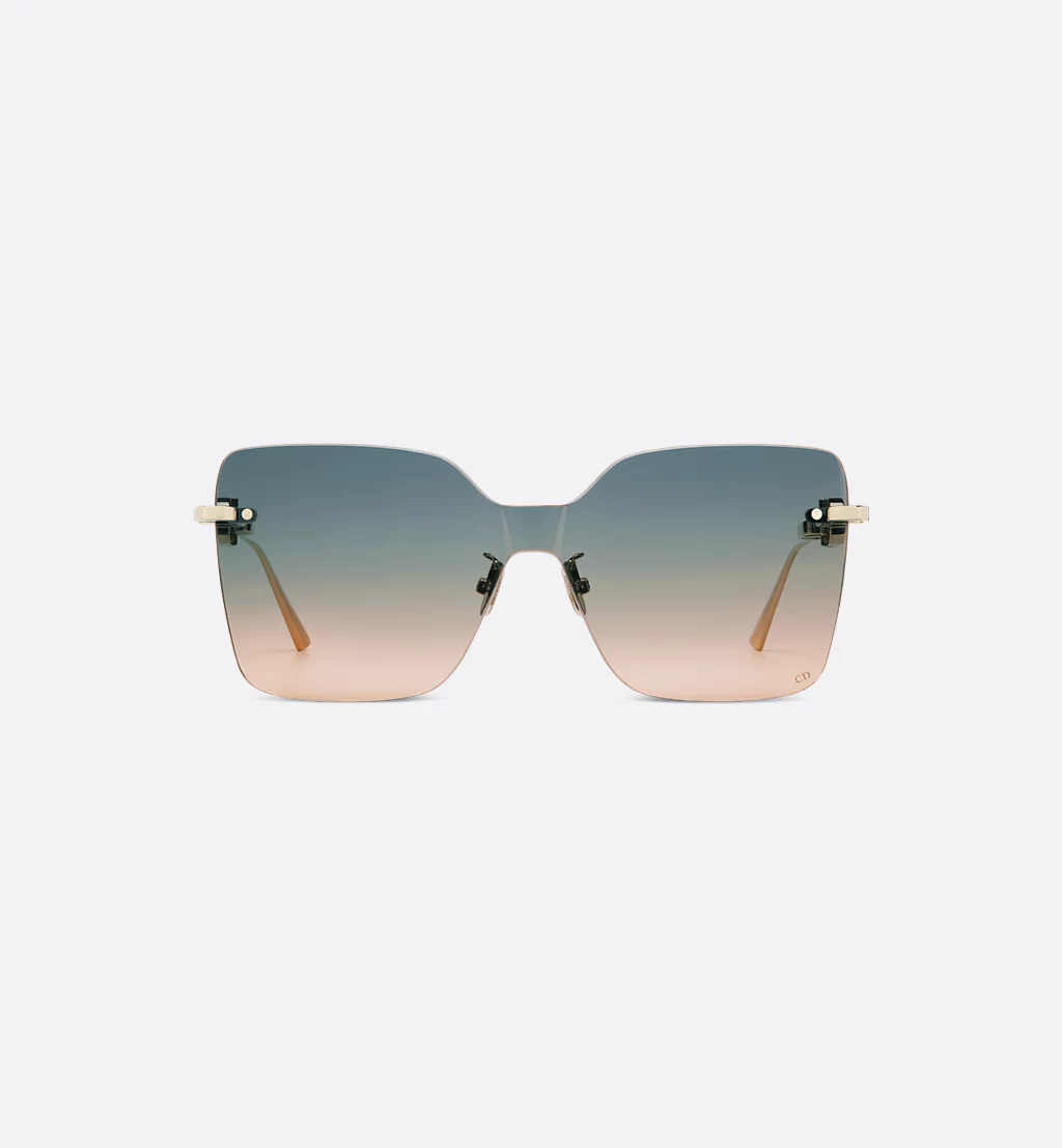 The CD Chain M1U sunglasses are a contemporary style, characterized by their frameless square mask shape. Featuring a functional CD hinge in gold-finish metal, the CD chain temples are inspired by the 30 Montaigne jewelry collection. Completed by a single gradient turquoise-to-amber mask lens, the glamorous creation will elevate any look with a modern touch.