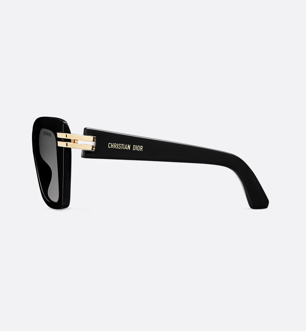 The CDior S1I sunglasses offer a new, urban take on the House’s CD signature. The black square acetate frame is enhanced by a gold-finish metal CD hinge inspired by the 30 Montaigne jewelry collection. Completed by gray gradient lenses, the glamorous style will elevate any look with a modern touch.-