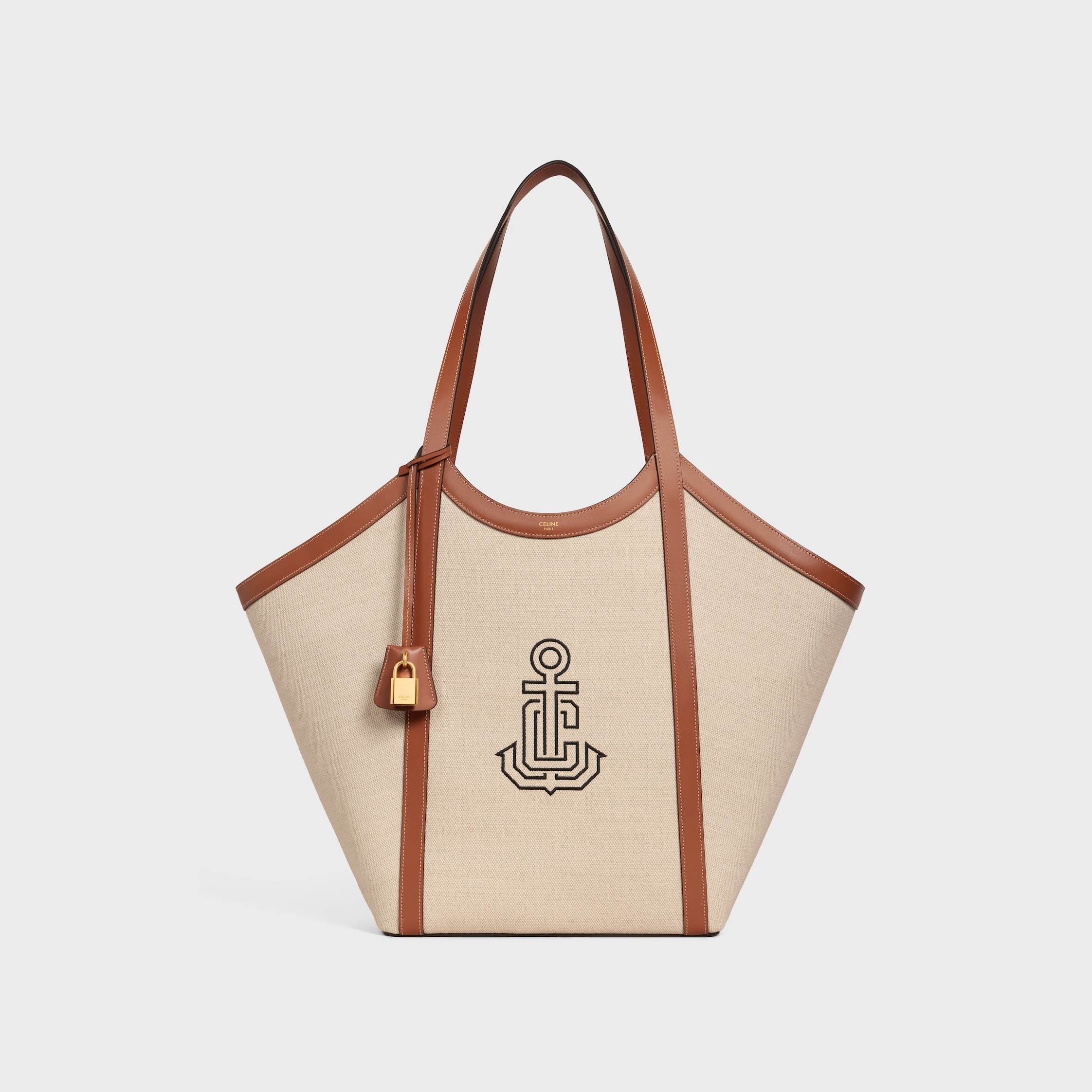 CELINE LARGE CABAS IN TEXTILE WITH ANCHOR EMBROIDERY AND CALFSKIN