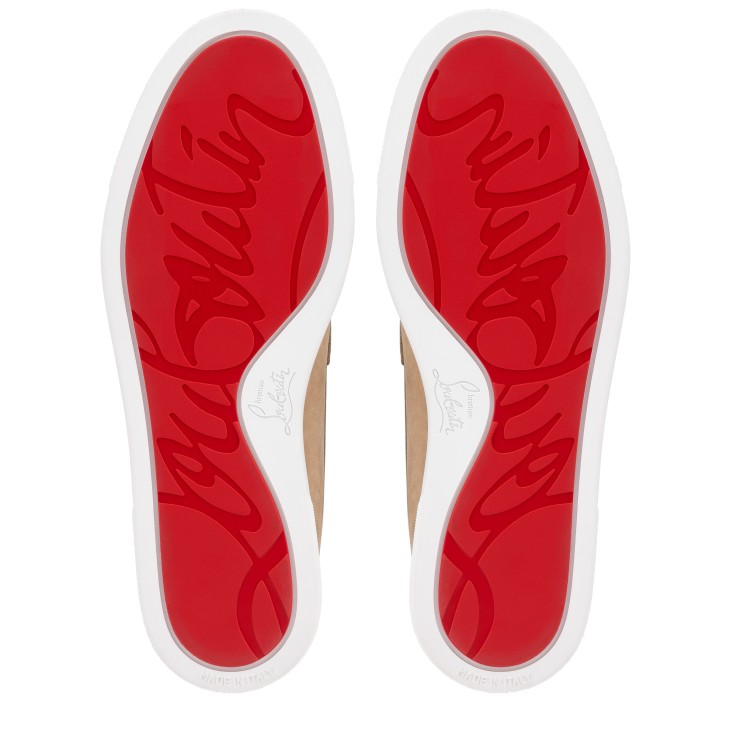 The Chambeliboat loafer for women features a sleek silhouette and supple structure. This refined model is entirely crafted in Lionne brown nubuck. Showcasing Maison Christian Louboutin’s creativity, it features a metal collar pin through the tongue. A summery model with a white rubber sole.